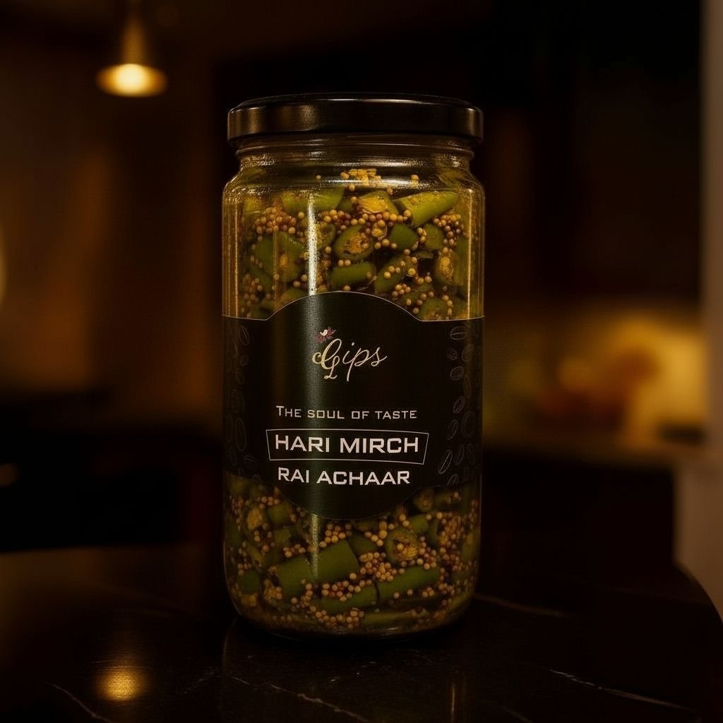 Hari Mirch Rai Achaar by GIPS International is a zesty and spicy Indian pickle made from fresh green chilies blended with mustard seeds, aromatic spices, and premium mustard oil. This tangy and fiery pickle delivers the authentic punch of traditional homemade flavors in every bite.