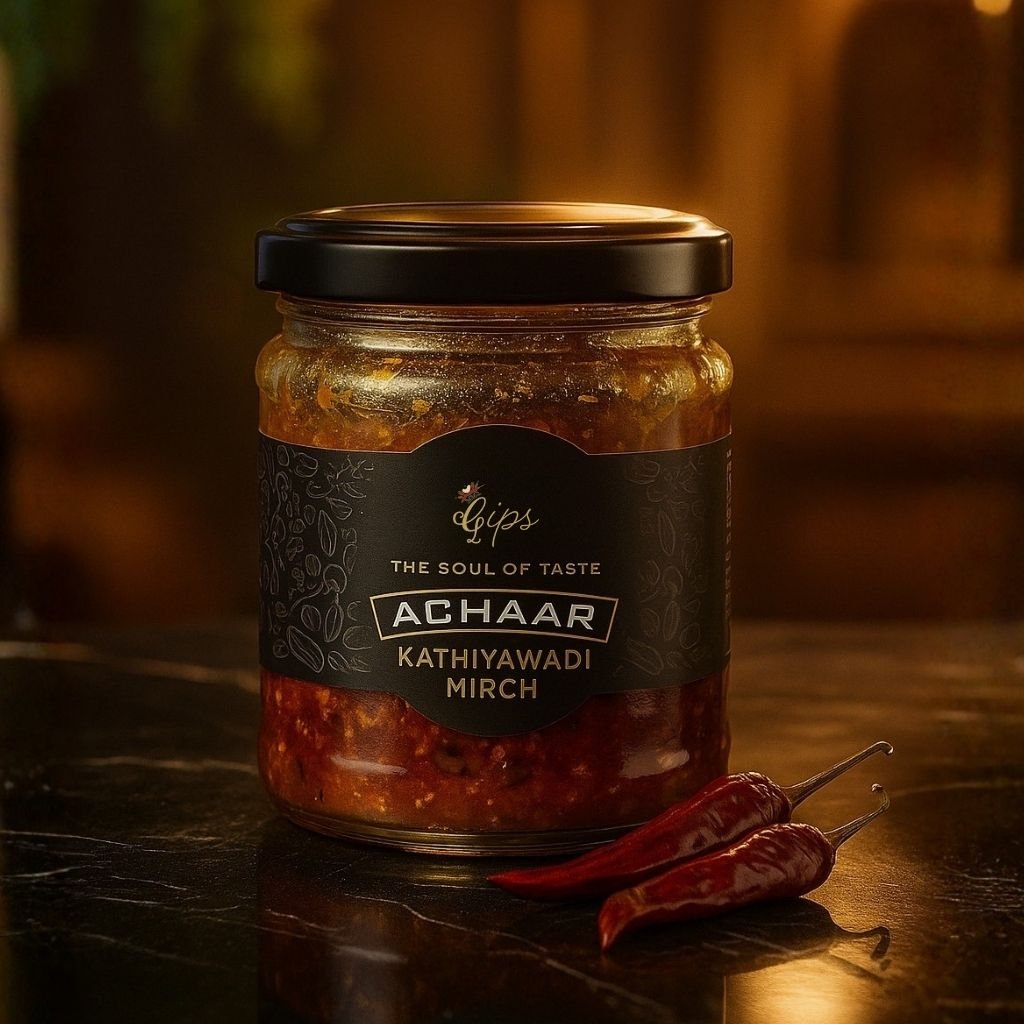 Kathiyawadi Mirch Achaar by GIPS International is a fiery and aromatic Indian pickle crafted from handpicked red chilies, blended with traditional Kathiyawadi spices and premium mustard oil. Known for its bold heat, tangy flavor, and authentic regional taste, this pickle brings the true essence of Kathiyawadi cuisine to your table.