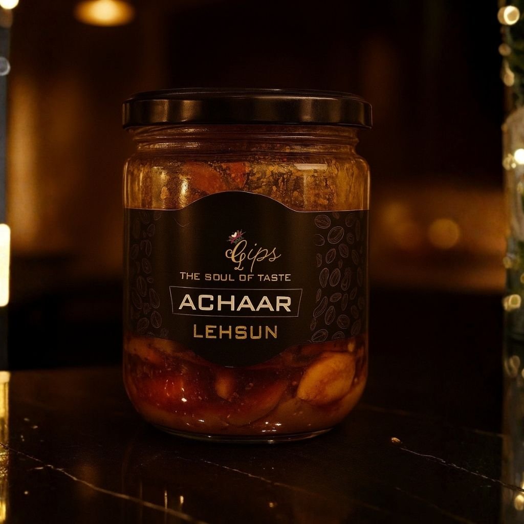 Lehsun Achaar by GIPS International is a traditional Indian pickle made from fresh, handpicked garlic cloves, carefully blended with aromatic spices and premium mustard oil. Known for its tangy, spicy, and pungent flavor, Lehsun Achaar delivers the authentic taste of homemade garlic pickle in every bite.