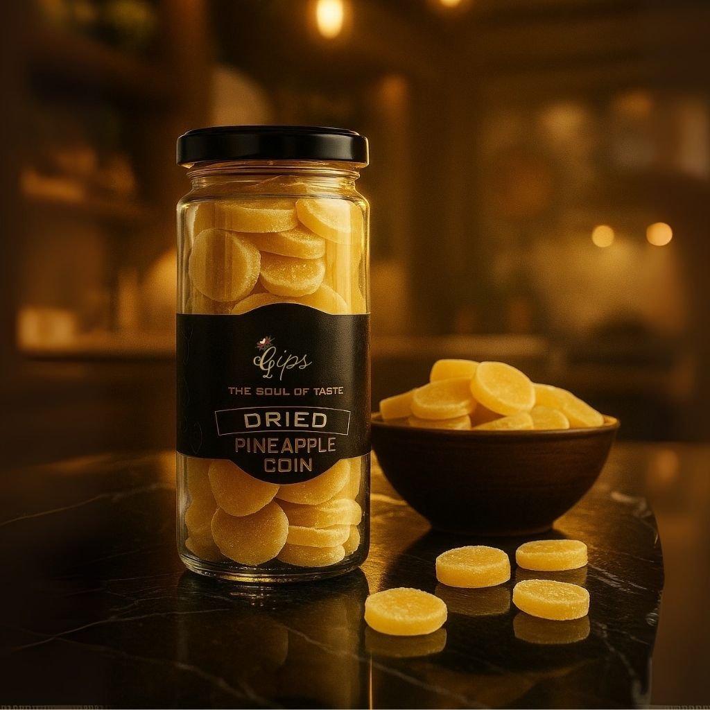 Pineapple Coin by GIPS International brings you the natural sweetness of handpicked pineapples, carefully sliced into coin-shaped pieces and dried to preserve their juicy flavor, soft texture, and consistent quality. These dried pineapple coins are a wholesome way to enjoy tropical fruit goodness along with essential nutrients.